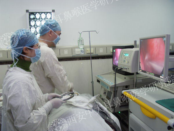 西安中大耳鼻喉医院根据世界卫生组织(WHO)诊疗规范标准,采用的喉内窥镜是诊疗咽喉疾病的一种前沿仪器,采用的是冷光光源,亮度强,可将咽部和喉部放大500倍高清成像,导光性强、多角度、视野大,可以使咽喉内狭小精密器官暴露在医生视野下,整个检查过程视野清晰,配备闪光灯泡以及摄影内镜,可拍摄清晰的彩色照片。一目了然,便于医师更精确的观察病变组织,获取更加精确的病情发展,找准病因,从而制定针对性的治疗方案。