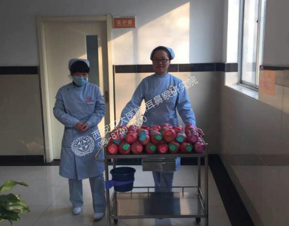 一个苹果,一点心意,一份祝福,12月24日西安中大耳鼻喉医院开始了一个不平凡的平安夜旅程: