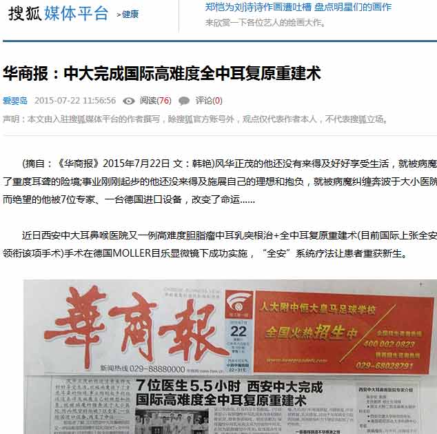 【搜狐】7位医生5.5小时,西安中大完成高难度全中耳复原重建术