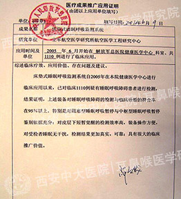 该技术及其判断规则已经过多家权威医院的临床应用,包括解放军总医院、北京医院、、上海医院、大连市等十余家单位。在上述医院中,共经过2000余例患者的临床应用和检验,微动敏感睡眠监测在低负荷睡眠呼吸障碍检测领域更精准,明显优于传统的多导睡眠监测系统。